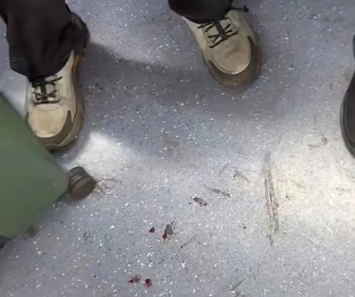 视频画面显示,这名男子携带的是一个绿色箱子,他手中还拿着纸巾,疑似正在擦拭箱子上的血渍。