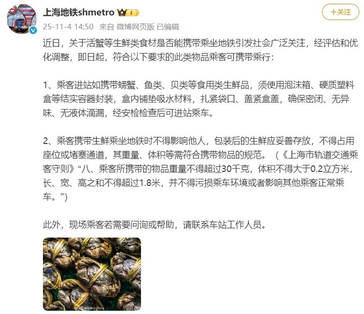 此前,能不能带活大闸蟹坐地铁也引发过讨论