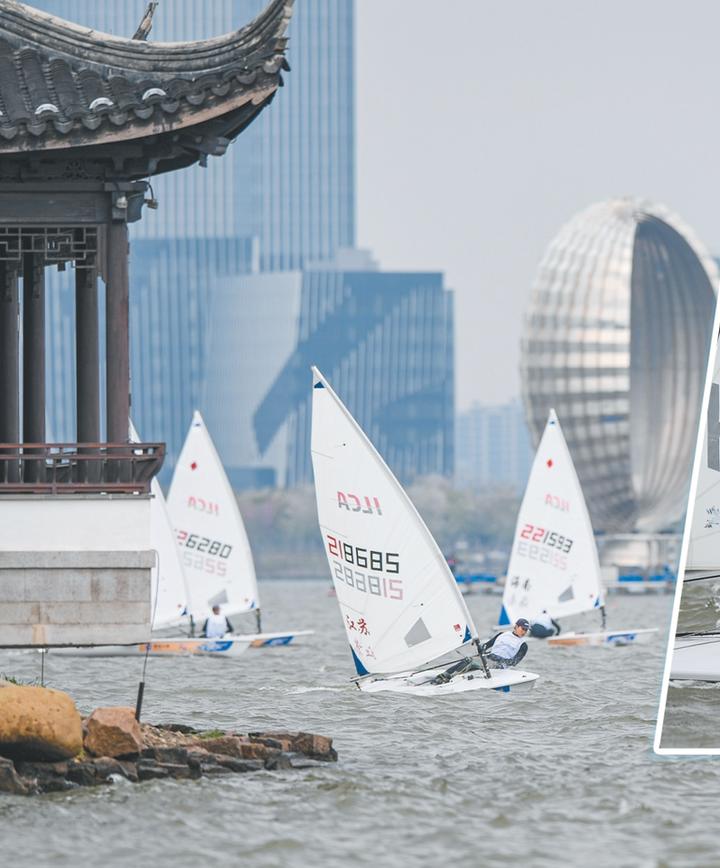 镜头定格赛场高光:码头边,选手调试帆具,整装待发;湖面上,百舸争流,劈波斩浪,白帆与碧波相映成画。本届赛事在保留J80级、ILCA6级的基础上,新增ILCA4青少年组别,从国际名将到少年新秀,参赛者以帆为媒,在滴水湖上切磋交流。