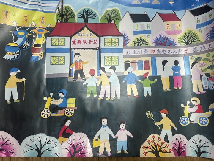 《做一讲,美十分》描绘了志愿者上门帮老人整理杂物的场景;《电表箱旁的警示》用夸张的笔触提醒居民注意用电安全……垃圾分类、平安建设、廉政文化、志愿服务,这些出自社区居民之手的“土味作品”,因熟悉而亲切,因真实而深入人心。
