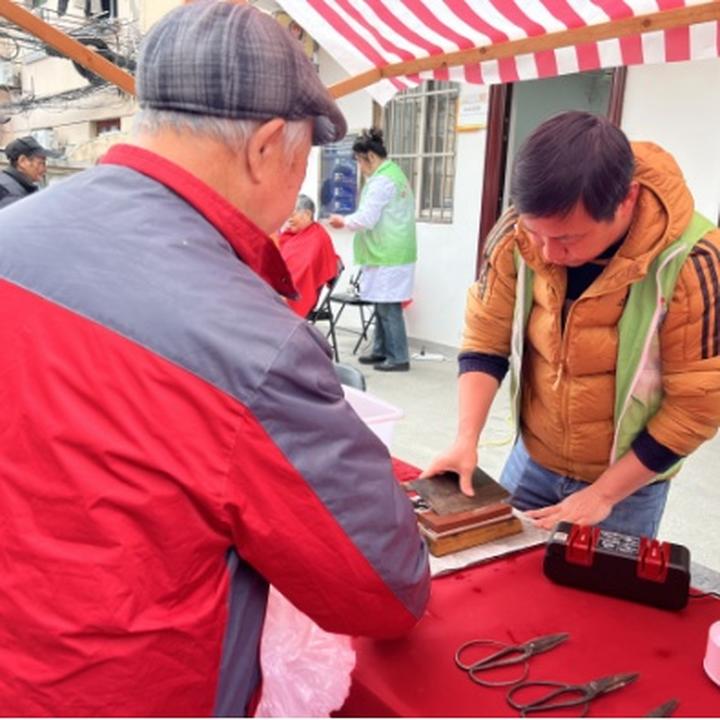 便民服务直击生活痛点,活动现场,磨刀、修伞、衣物缝补等服务摊位前人气满满,物业工作人员耐心细致服务,一件件旧物重焕生机,切实解决居民日常小难题。同时,健康义诊、便民理发等暖心服务同步开展,关怀覆盖老年群体与全年龄段居民。