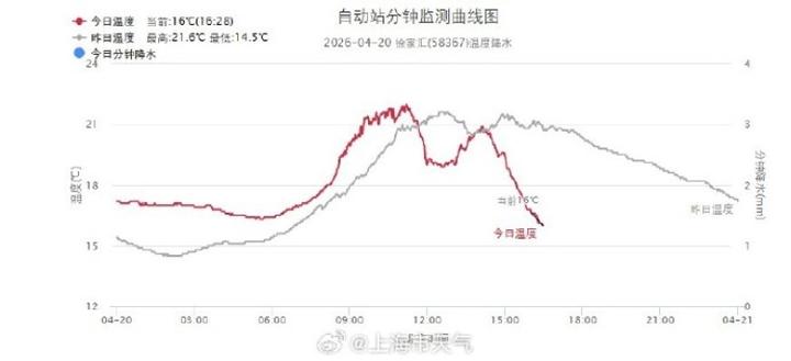 昨天下午冷空气扩散的影响开始显现实力。上海市气象局的数据显示,徐家汇站的气温快速下降,到下午2点以后已经跌至16℃附近,相较午间最高气温,跌掉了约6℃。