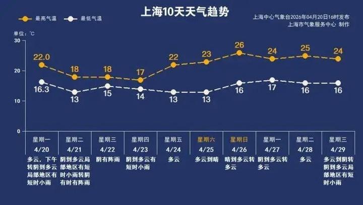 今天白天上海以阴到多云为主,局部地区有短时小雨。受低涡切变影响,傍晚转阴有时有小雨,夜里起雨势增大,转为阴有时有阵雨的天气,局部地区雨量可达大雨。偏东风4-5级,今天中午转东南风4-5级,沿江沿海地区阵风有6级,气温回落至13~17℃之间。体感变凉。