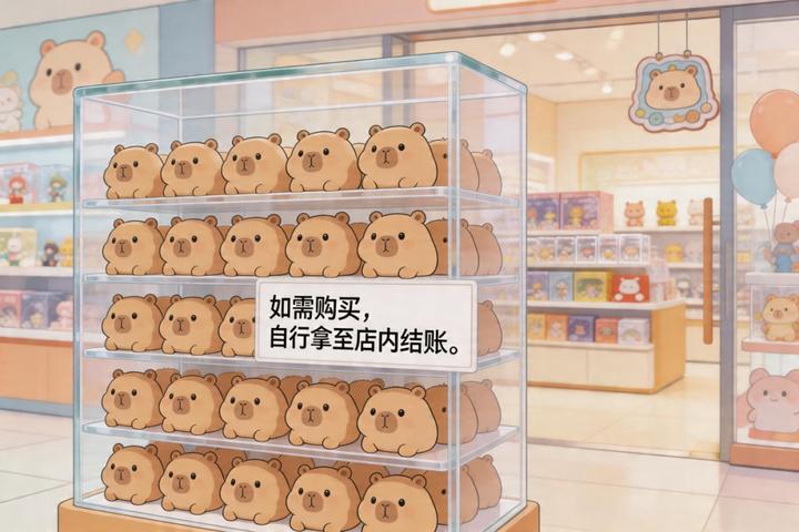 这起潮玩失窃案的起因是这样的:店家为吸引客流,就把“卡皮巴拉”萌粒玩偶放在店门口透明展示柜里,并写着“如需购买自行拿至店内结账”的字样。万万没想到,竟然有人选择“零元购”!过了一段时间后,店家盘点货物时才发现有玩偶丢失了,而且丢失的数量竟然有上千个之多!