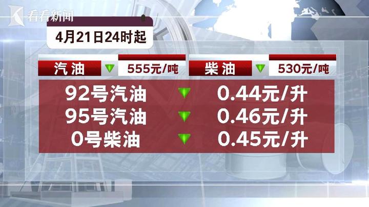 国内成品油年内第八次调价窗口开启,汽、柴油零售价每吨分别下调555元、530元,折合92号汽油、95号汽油、0号柴油每升下调0.45元左右。