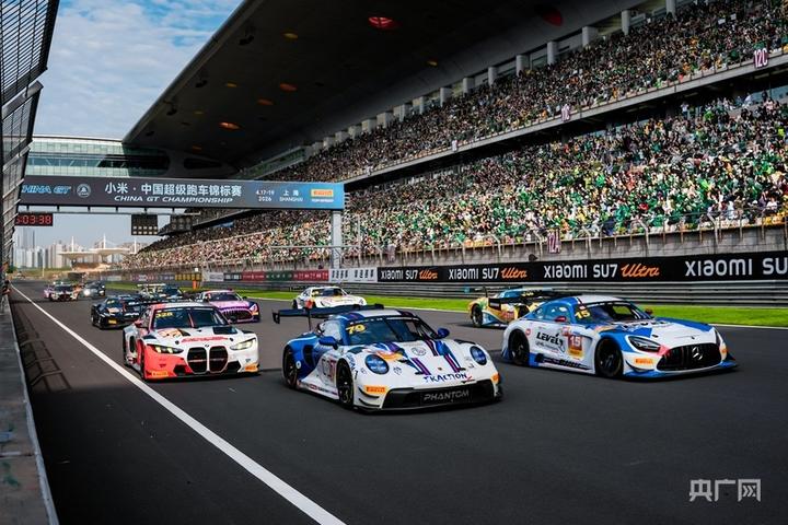 央广网上海4月21日消息(记者林馥榆)7辆赛车整齐排列在发车格,108位车手整装待发,GT3、GTC、GTS三大组别同场竞技……4月18日至19日,2026小米·中国超级跑车锦标赛(China GT)揭幕站在上海国际赛车场打响。这是China GT创办10年来参赛规模最为庞大的一届,也是其历史上首次分站赛门票100%售罄。两天正赛期间,超过5万名车迷涌入上赛场,共同见证这场速度与激情的盛宴。