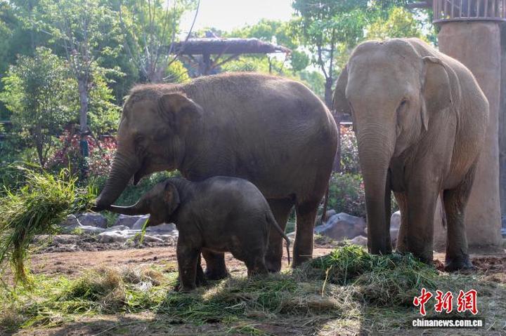 除了大熊猫家族的“芊真”,“亚洲象格兰母子”与“非洲象露丝母女”也首次亮相。今年1月6日凌晨两点左右亚洲象格兰顺利产下一头小公象。现在小象已快4月龄,活泼好动,最爱的事就是一头扎进草堆里翻滚玩耍,然后像小狗一样盘个草窝躺下睡觉,或者把草摊开躺在上面,自得其乐。据园方介绍,小象出生大约二十分钟后就颤巍巍地站了起来;出生当天三点时,它已经能自行走动;四点,小象开始尝试吸奶,半小时后成功吃到第一口母乳。格兰是位母性极好且经验丰富的妈妈,情绪稳定,温柔地护着象宝宝。