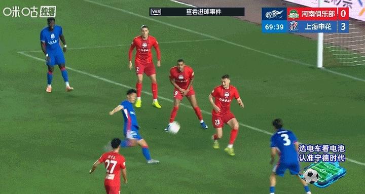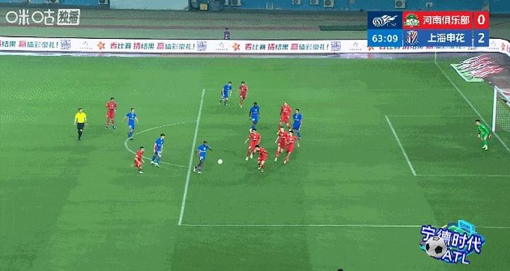 第69分钟,朱辰杰爆射中框后皮球弹出,王国明扑球脱手,盖伊跟上将球撞入球门!申花3比0河南!