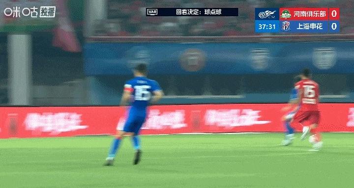 第36分钟,阿布拉汗禁区内疑似对特谢拉犯规,VAR介入,主裁王竞亲自回看视频后判定申花赢得点球,吴曦操刀命中,申花客场1比0领先!
