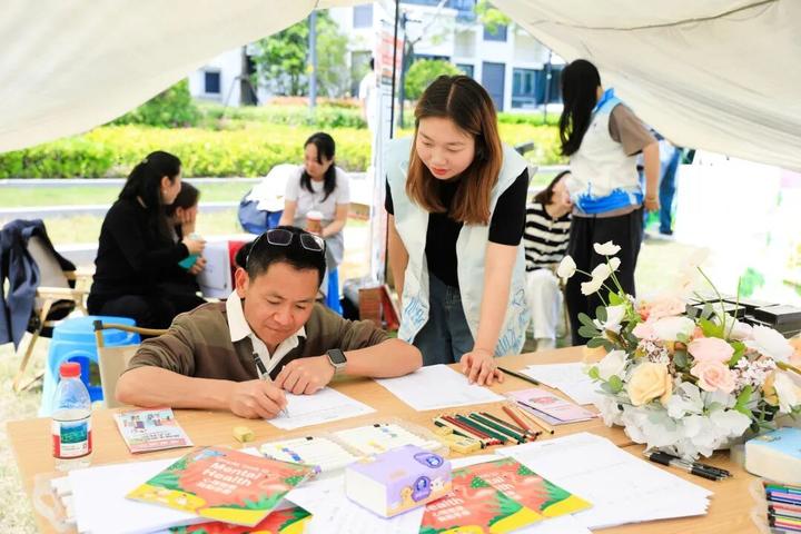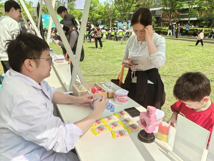 旁边的“健康集市”同样人气爆棚。上海市第五人民医院、区牙病防治所、区精神卫生中心、区医疗急救中心等单位设置了趣味互动摊位,控糖飞行棋、高血压对弈棋盘、心理减压游戏、急救技能体验……市民在打卡互动中轻松“涨知识”。