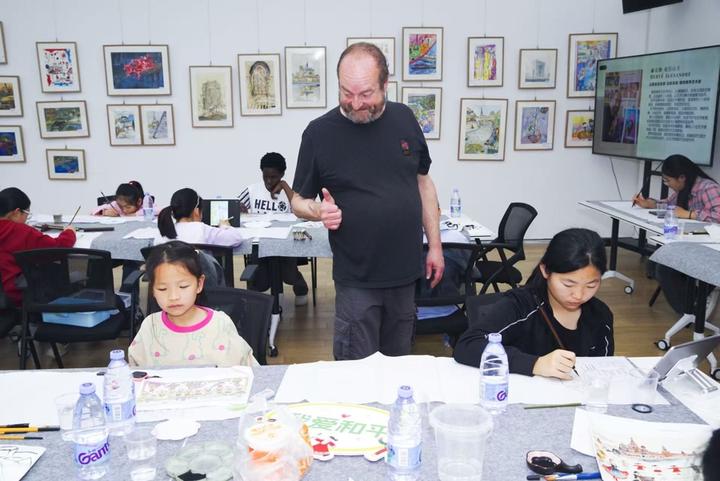 本次活动汇聚中、意、法三国艺术力量,为长卷创作注入了深厚的艺术内涵与开阔的国际视野。意大利艺术家深耕艺术教育与公共艺术领域,兼具丰富的国际展览与社会美育实践经验;法国艺术家以当代艺术创作视角,推动东西方艺术语言对话与碰撞;中国艺术家坚守水墨艺术根脉,助力传统水墨在当代青少年创作中实现创新表达。三国艺术家以专业引导陪伴创作,以美育理念启迪心灵,让“爱与和平”的精神在一笔一画中自然传递、深入人心。