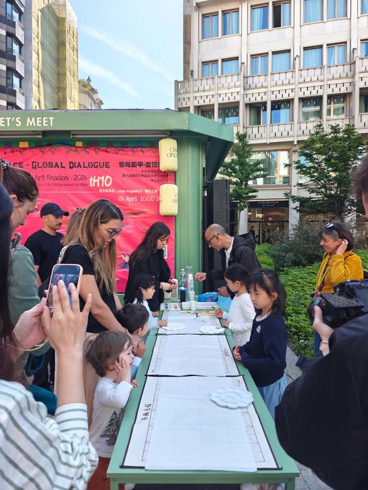 4月26日,“Shanghai in My Mind 2026——春日上海”米兰快闪系列活动·青浦日在意大利米兰奥古斯都广场“上海书报亭”举办。作为该活动的核心内容之一,2026朱家角国际艺术季暨第十届墨韵少年国际水墨艺术大赛同步举行全球启动仪式,征稿截止日期为2026年5月26日。以此为重要契机,大赛十周年标志性艺术行动——“爱与和平·全球对话”36米国际水墨长卷,于中国上海朱家角与意大利米兰双城同步启笔创作,以水墨为桥、以童心为媒,奏响一场跨越国界的青少年艺术交流与和平对话。