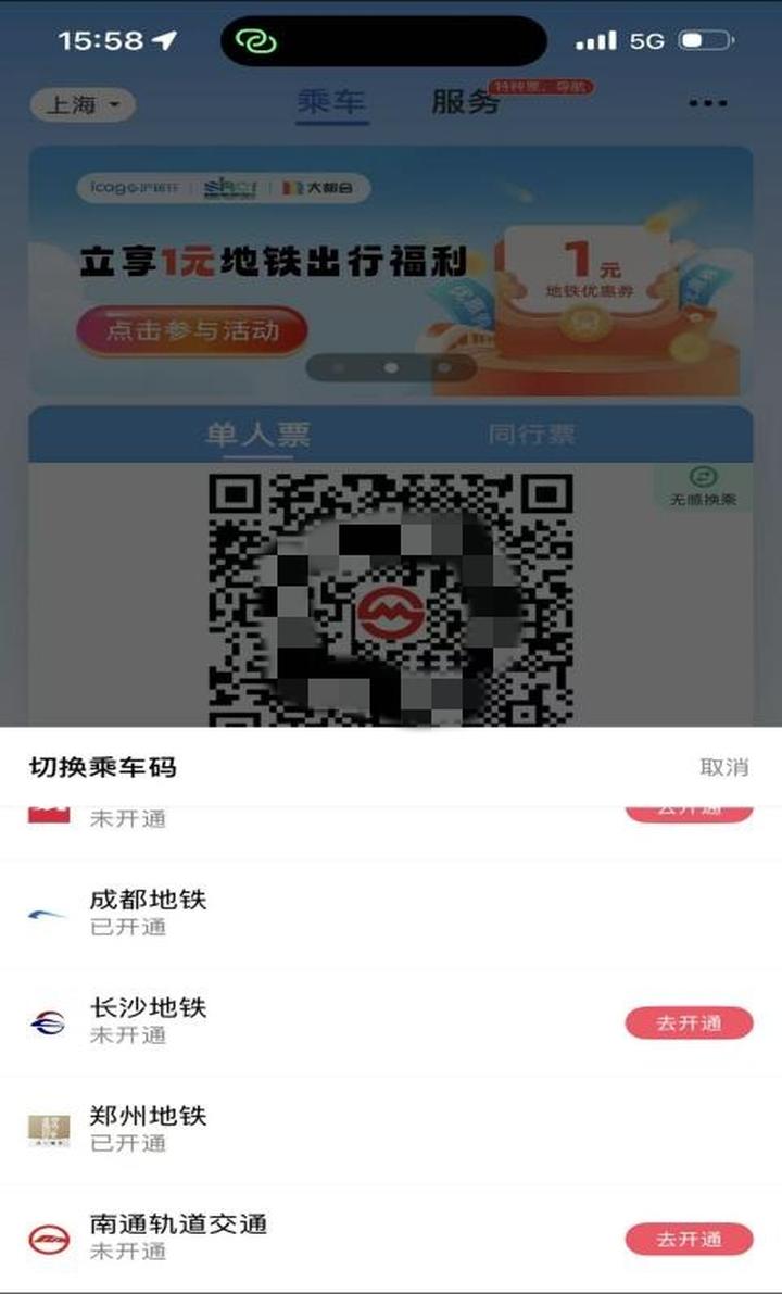 图2 “Metro大都会App”南通地铁互联互通展码