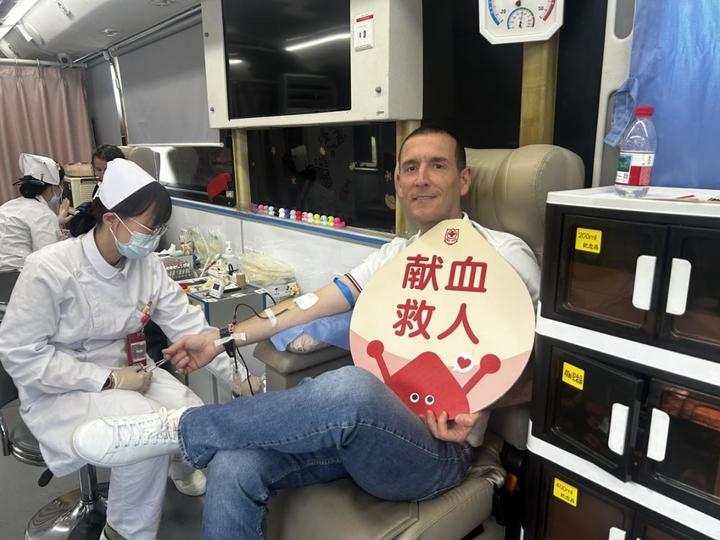 身为外科医生,阿思势因自己有无偿献血的经历,加入了上海市血液中心无偿献血志愿者的队伍,他与上海市血液中心紧密协作,策划组织温暖有趣的公益活动,破除认知误区,带动更多中外居民了解献血、主动参与献血。