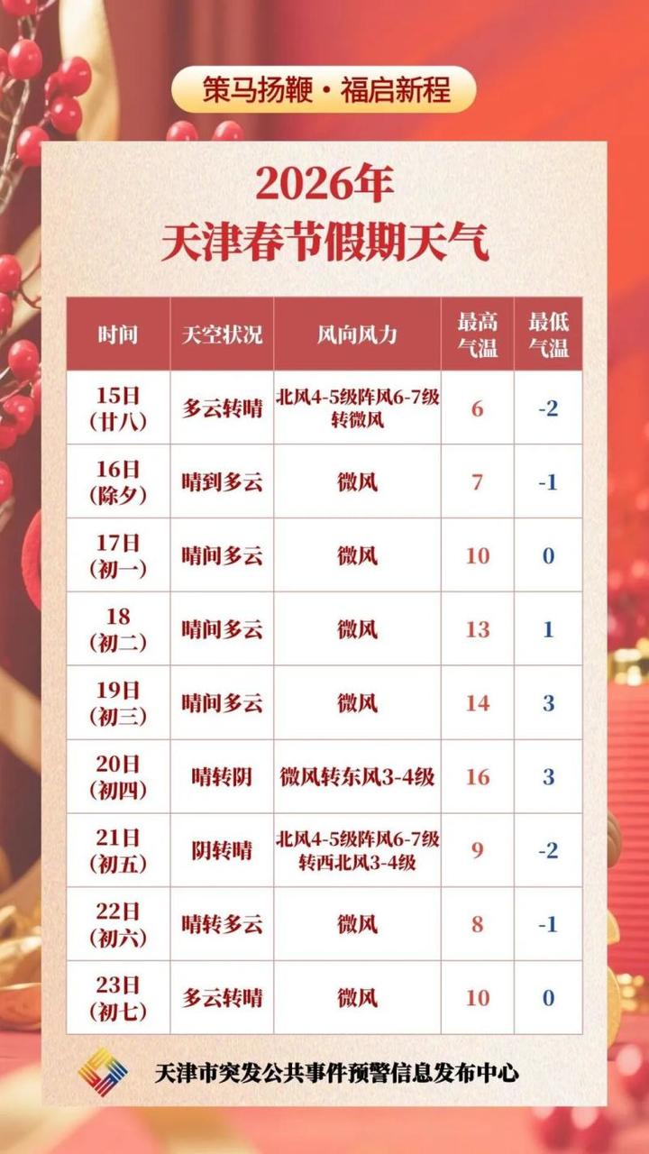 春节期间天津天气趋势