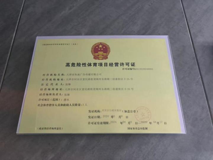 2024年5月,在河东区体育局的协调下,潜水中心的相关材料完成了备案,李梦想终于拿到天津首张私人创办潜水中心的“高危险性体育项目经营许可证”。“2025年底,上海一家开了多年的知名潜店,借鉴我们的办证流程,成功拿到了当地首张高危许可证。”李梦想说,虽然摸索办证的过程很繁琐,但能推动潜水中心规范化,让他更有成就感。