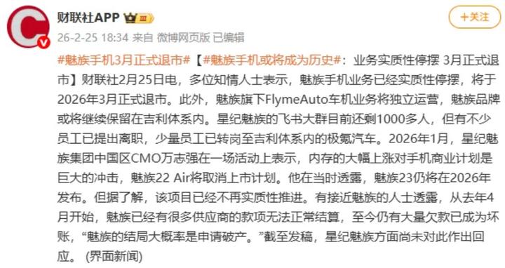 针对此次破产退市传闻,2月27日,魅族正式对外公告称,将暂停国内手机新产品自研硬件项目,并在积极接洽第三方硬件合作伙伴,原有业务不受任何影响。