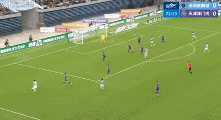 深圳队极具侵略性的肉搏式打法让津门虎很不适应,下半场一开场,身体不适的闫炳良就被齐雨熙换下。而深圳队并没有丝毫收敛,胡睿宝铲翻谢维军的动作,按理说完全可以领到黄牌,但因为胡睿宝已经身背一黄,主裁判高抬贵手,放其一马。