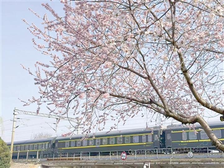 春和景明,万物勃发。近日,天津迎来最佳赏春期,京沪铁路上跨京津公路的一处地道桥,因“列车穿花海”的绝美景致迅速走红,成为市民争相前往的拍照打卡地。粉色桃花缀满枝头,各色列车穿梭其间,人与自然、工业与春光完美交融,勾勒出津城春日里最动人的画卷。