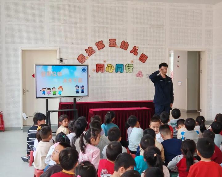 3月11日,少警教官来到泰达第五幼儿园,为全体大班孩子带来一场安全专题小课堂,通过讲解乘车安全、道路安全、用电安全和其它安全四方面知识,在孩子们心灵中种下一颗安全的种子。