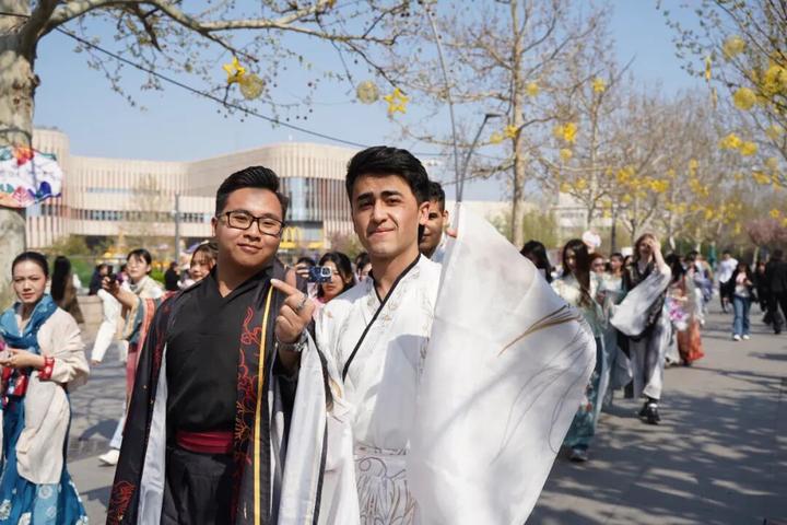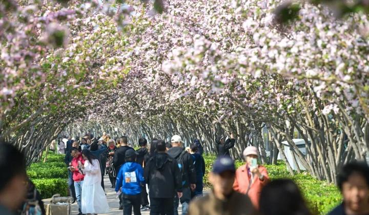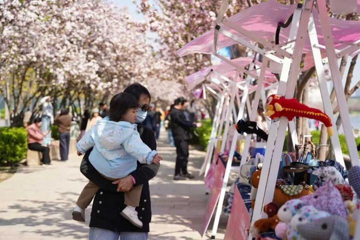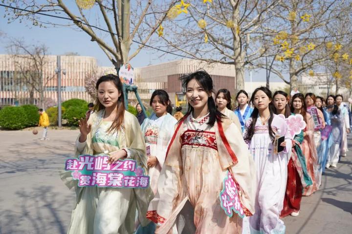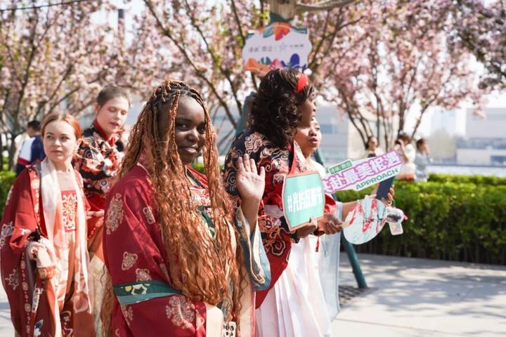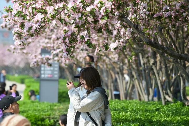 她们衣袂飘飘,姿态优雅,与海棠花相映成景,沿途设置的多处打卡互动点位更是吸引了无数市民游客驻足。人们纷纷与巡游者合影互动,甚至换装打卡,近距离感受华服之美,沉浸在这古今交融的文化氛围之中,仿佛穿越时空,与历史对话。