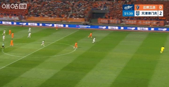 上半场,云南玉昆借助高原主场之利,将阵型压得非常靠上,津门虎也有意识地拖慢比赛节奏,并多次利用长传制造反击机会,而这种战术也收到了奇效。