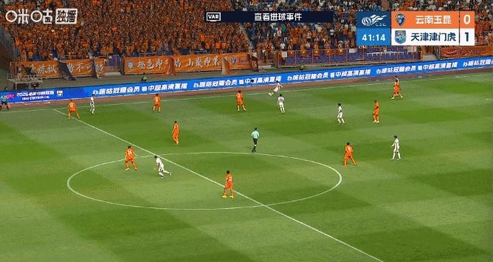 第60分钟,黄紫昌突破摔倒在禁区内,主裁判单丹奥判罚点球,不过,经VAR确认,黄紫昌是明显假摔,主裁判取消了点球判罚,并向黄紫昌出示了黄牌。