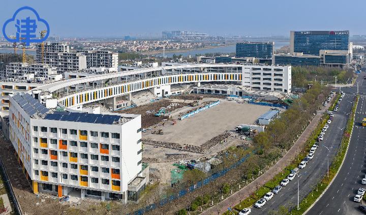 记者从中新天津生态城获悉,近日,位于生态城华五路与中天大道交口的50号地块中学项目主体完工,进入景观园林施工阶段,将作为生态城第一中学甘露溪校区,预计2027年投入使用。