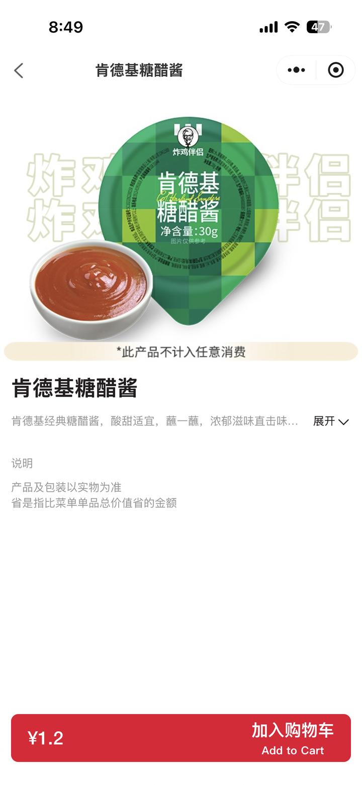 肯德基点餐小程序上的糖醋酱界面。