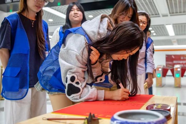 为了弘扬传统文化,增强文化自信,让市民乘客进一步了解天津地铁,提升企业品牌形象,此次活动,运营集团还邀请了职业大学的学生和市民乘客参加了“地铁诗词大会”,邀请大家进行诗歌对答和“飞花令”,并为乘客送上精美的文创礼品。