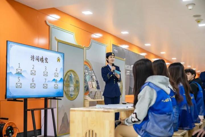 职业大学车站还介绍了礼仪研学主题车站建设的背景及活动预约机制。今年,运营集团在该车站试点,以诗词为核心元素,在站台屏蔽门上张贴了诗词名句,将其打造为“城市名片”上的“流动诗卷”,让乘客在等候列车时,也能时刻感受到诗词的美。