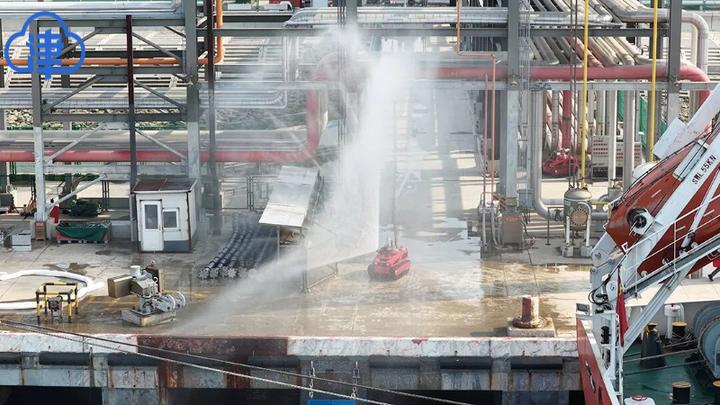 本次演练由南港海上搜救分中心和天津渤化南港码头仓储有限公司承办,港航、应急、消防、生态环境等17家单位联合参与,投入各类船舶15艘、专业车辆10台、直升机1架,参演人员200余名,同时动用飞行救生圈、无人监测艇、智能消防机器人等一批先进装备。演练共设置三大科目,模拟商渔船碰撞人员搜救、散化船舶(苯)泄漏处置、涉水施工船舶火灾扑救等核心场景,构建起“空中侦查、水面处置、水下探测”的立体化救援体系。