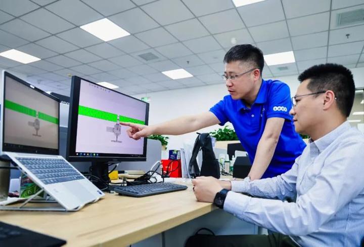蓝箭鸿擎(雄安)空间科技有限公司研发人员正在交流卫星设计细节。记者 潘立峰 摄