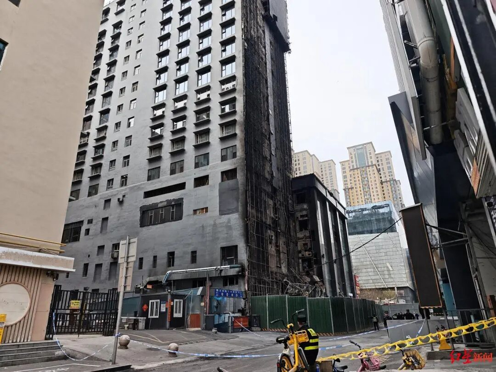 探访太原怡和巷火灾现场:楼宇外侧被烧,楼下多家饭店火灾前“生意非常火爆”