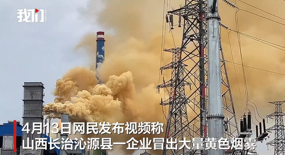 4月13日,网民发布视频称,山西长治沁源县一企业冒出大量黄色烟雾。