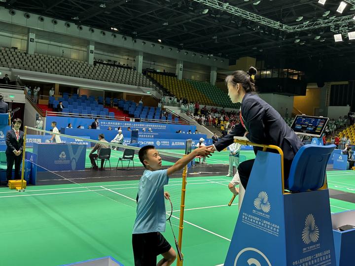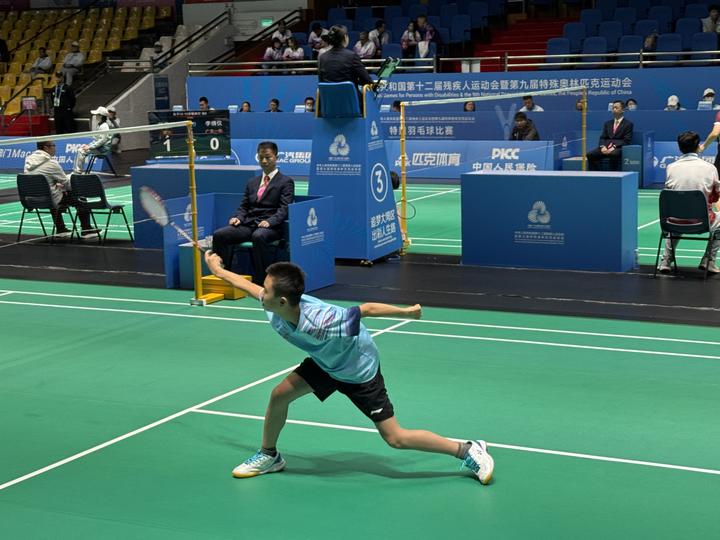 赛场上,张睿哲展现出远超年龄的沉稳与爆发力,在男子单打项目中一路过关斩将,决赛仅耗时16分钟,就以2∶0战胜对手,更值得称赞的是,在与搭档沈晨共同出战混合双打项目时,由于搭档年龄规定需升入16-21岁年龄组,14岁的张睿哲面对与年长选手的差距,毫无惧色、敢打敢拼,最终斩获一枚宝贵的混双银牌。