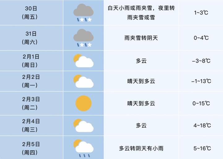 2月1日最低气温-4~-2℃