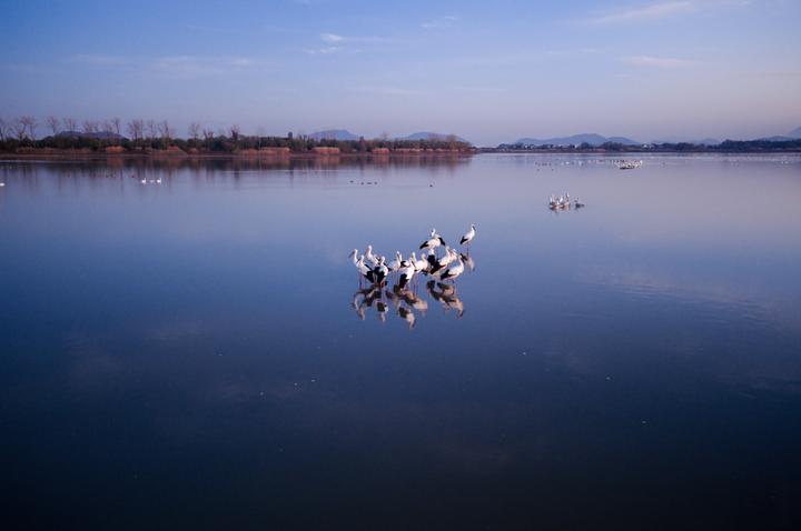 池州襟江带湖,湿地星罗棋布。升金湖,作为安徽省首个国际重要湿地,享有“中国鹤湖”的盛誉。每年秋冬,近十万只候鸟从西伯利亚归来,白鹤、白头鹤、白枕鹤等珍禽在浅滩优雅踱步,东方白鹳舒展着修长羽翼,小天鹅、雁鸭群在水面漾开层层涟漪,构成一幅万鸟翔集的生态画卷。