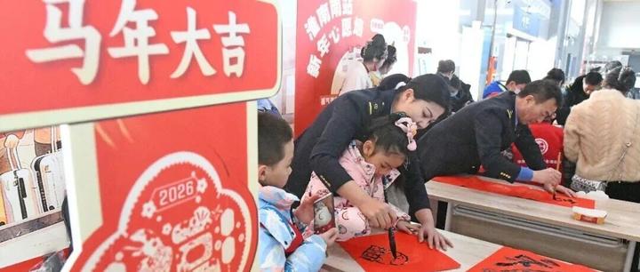当天上午,在芜湖站候车大厅里,鼓声激昂、民乐悠扬的快闪表演吸引了许多旅客驻足聆听,有的还拿出手机记录这温馨瞬间。活动现场,几位书法名家为旅客写春联、赠福字,一幅幅书写工整、寓意吉祥的春联跃然纸上,大红的春联、浓郁的墨香,瞬间将春运的年味拉满。