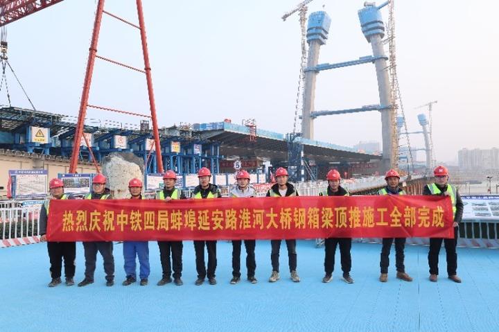 大皖新闻讯 2月2日,记者从正在建设中的蚌埠延安路淮河大桥现场获悉,该项目主桥钢箱梁顶推施工当日全部完成,为大桥后续转入斜拉索安装和主跨钢箱梁吊装施工阶段打下坚实基础。