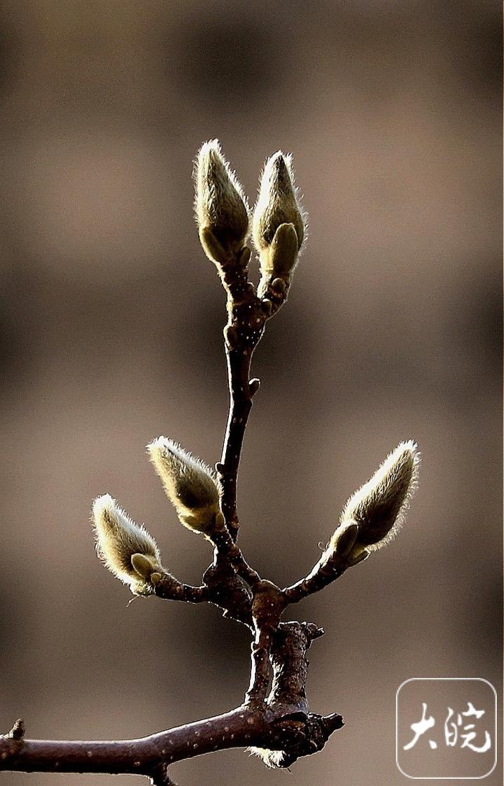 玉兰花苞饱满欲绽。