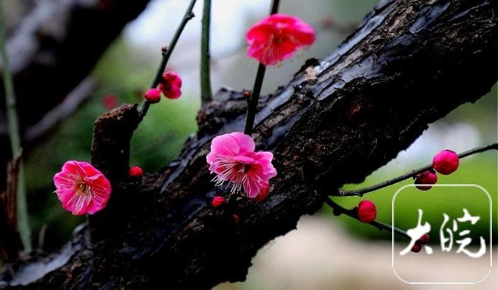 红梅缀枝吐露芬芳。