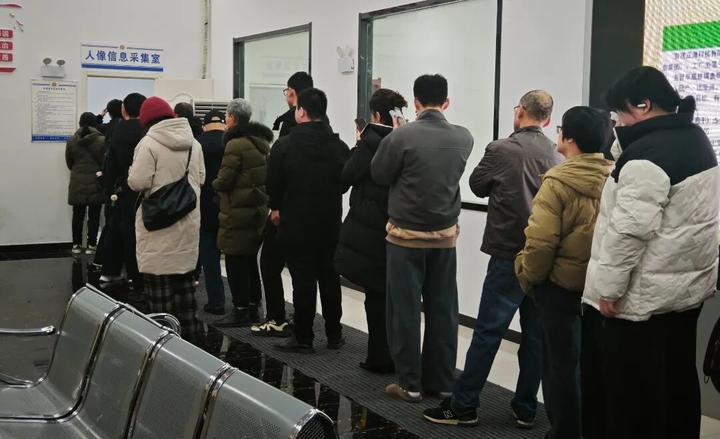 2月4日下午,迎江区政务服务中心公安户政窗口人像采集处排起长龙,不少市民趁着年前来换领即将到期的身份证。