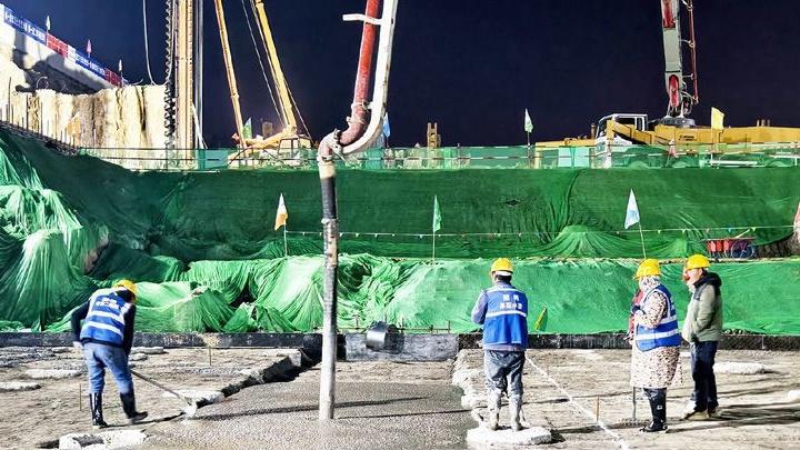 近日,记者在建设现场看到,第11号闸室基槽已开挖成型。经相关部门验收,基槽质量合格。当晚,施工方开始对该基槽浇筑30厘米厚的塑性混凝土。