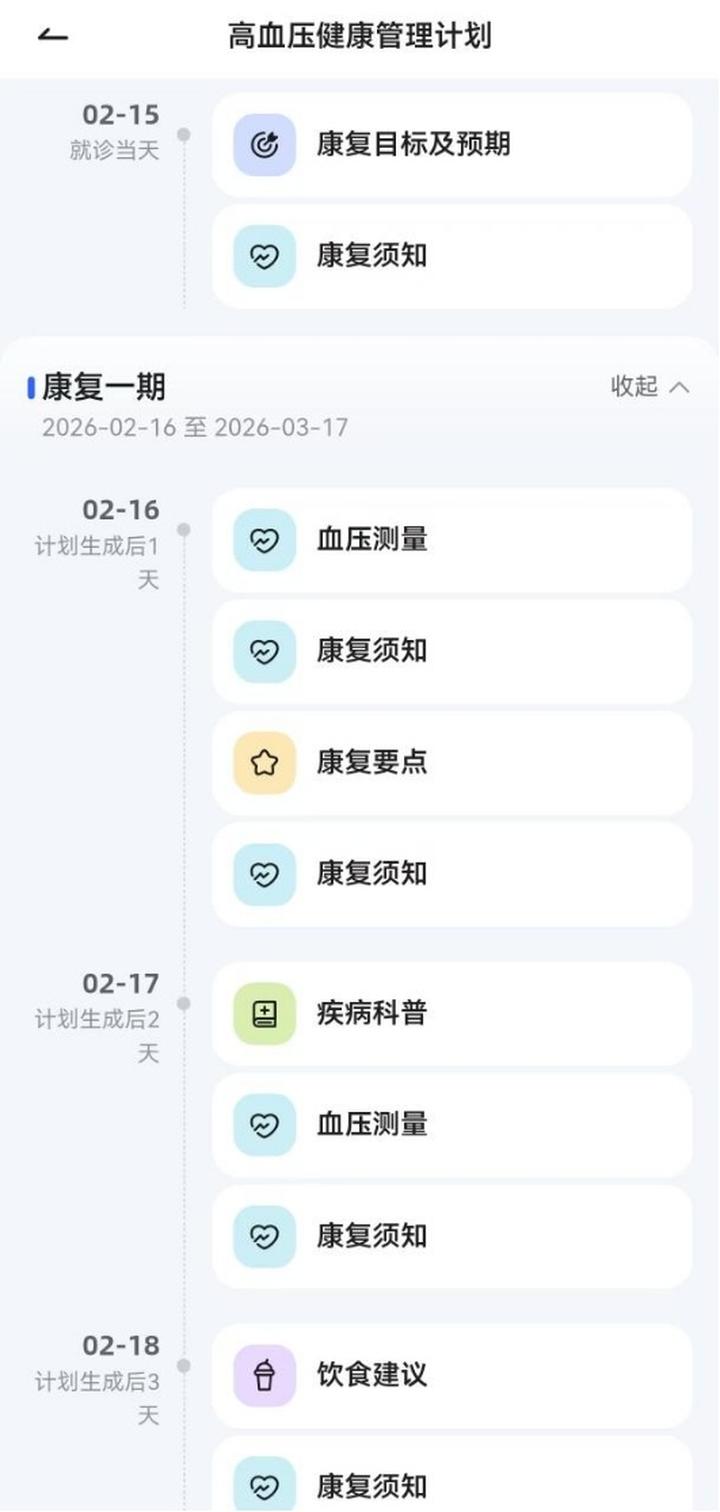 比如,父亲有高血压,当他说 “最近有点头晕”,晓医不会只给笼统的建议,而是结合他的病史、用药记录,给出更贴合的指导,还会提醒用药搭配禁忌、同步智能硬件数据,提前预警风险,甚至生成一份专属的每日健康管理计划,把关心变成可执行的小事。