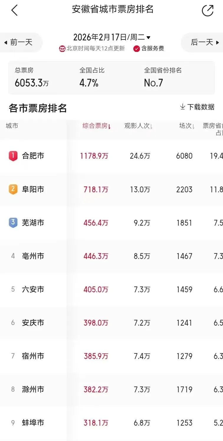 位居安徽省城市票房排名第二位