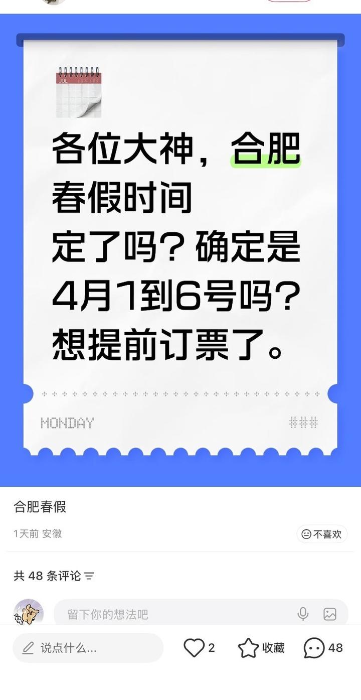 为进一步核实情况,大皖新闻记者在安徽省教育厅、合肥市教育局、芜湖市教育局等官方网站及官方公众号上进行查询,均未找到相关政策发布的具体文件。3月3日下午,记者就此事向相关政府部门进行求证。针对网传的春秋假具体时间安排,相关工作人员明确表示:“目前还没有确定,一旦定下来,我们会通过官方渠道正式发布。”对于“合肥、芜湖、蚌埠三市率先试点”的说法,该工作人员同样表示不清楚,并强调:“目前官方尚未发布相关信息。”