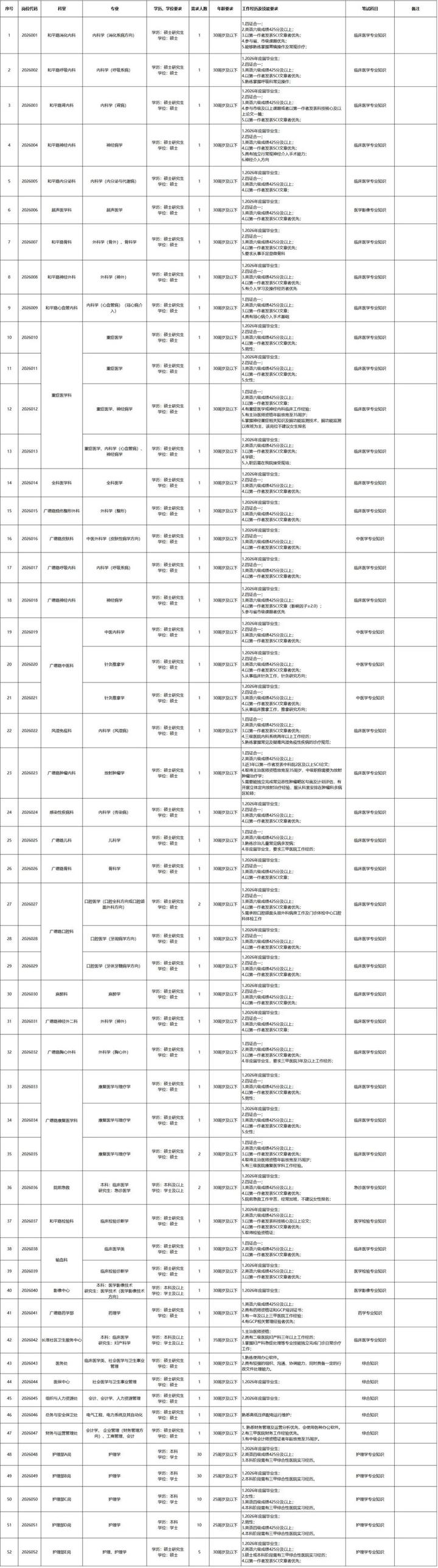合肥市第二人民医院2026年公开招聘博士研究生岗位表
