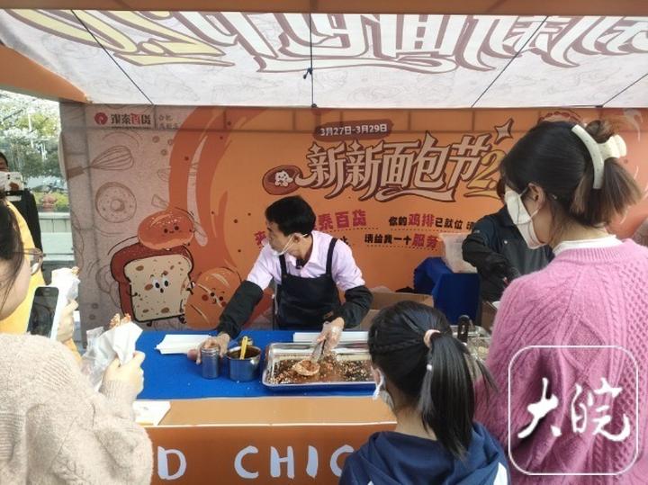 据现场工作人员介绍,“巡炸”活动预计晚上8点结束,3月29日下午,鸡排哥将继续在合肥银泰百货(高新店)“巡炸”,28日、29日两天,共免费送出1000份鸡排。