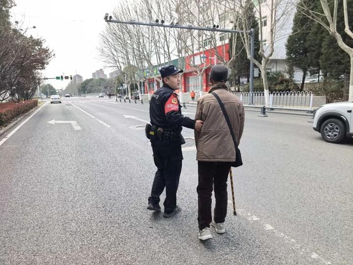 ??就在这时驾车途经的蒋先生看到后立即拨通了报警电话说明了情况和具体位置随即减速驾驶车辆小心翼翼地跟随在老人身后用车身形成一道移动的“防护墙”默默护其周全接到报警求助后肥东县公安局特巡警大队民警火速赶往现场